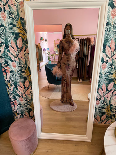 Set Camicia e Pantalone Fantasia e Piume Champagne