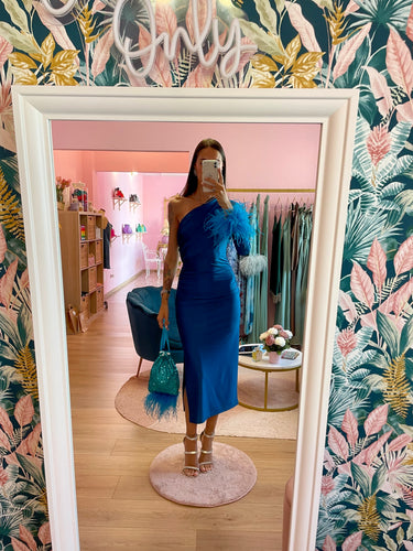 Abito Monospalla Petrolio Piume Turchese