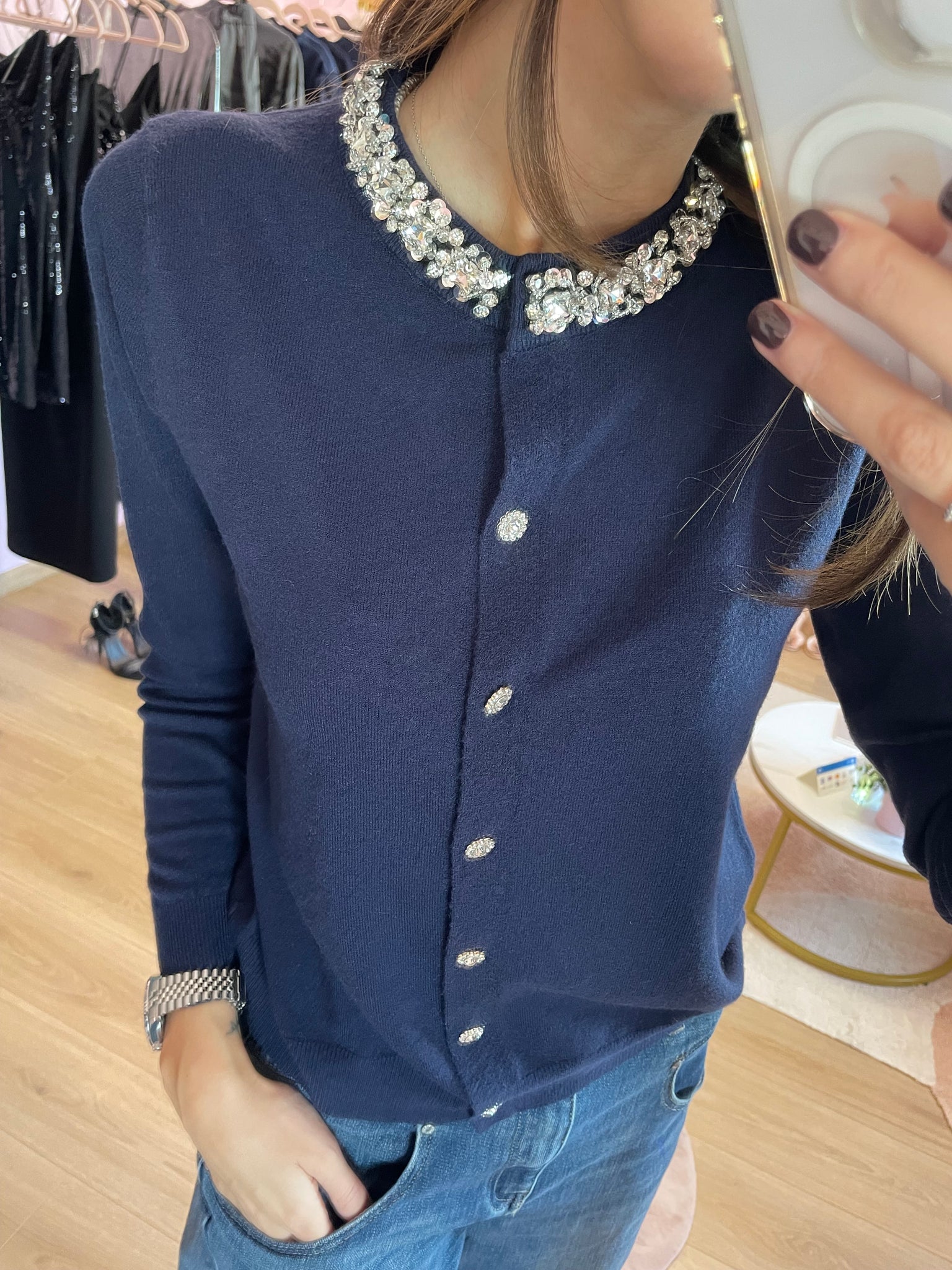 Cardigan in morbidissima viscosa con bottoncini e collarino gioiello. Maniche lunghe. Slim Fit. Adatto sia per il giorno che per la notte.